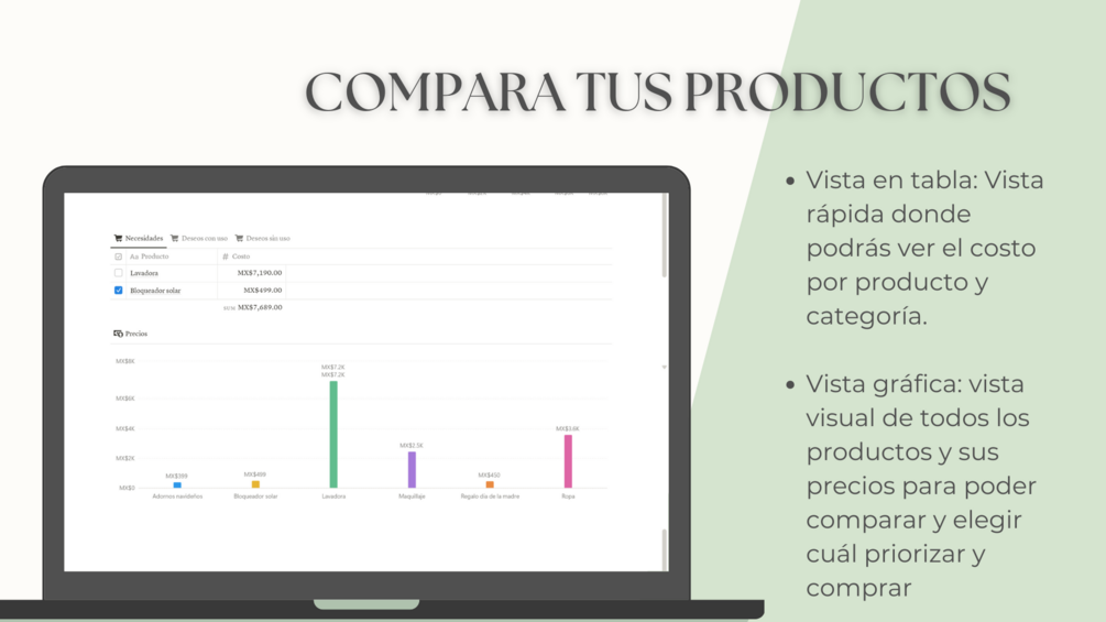 ✔️ Necesitas visualizar mejor tus decisiones de compra: Evalúa qué productos realmente quieres y cuáles puedes dejar pasar antes de gastar.